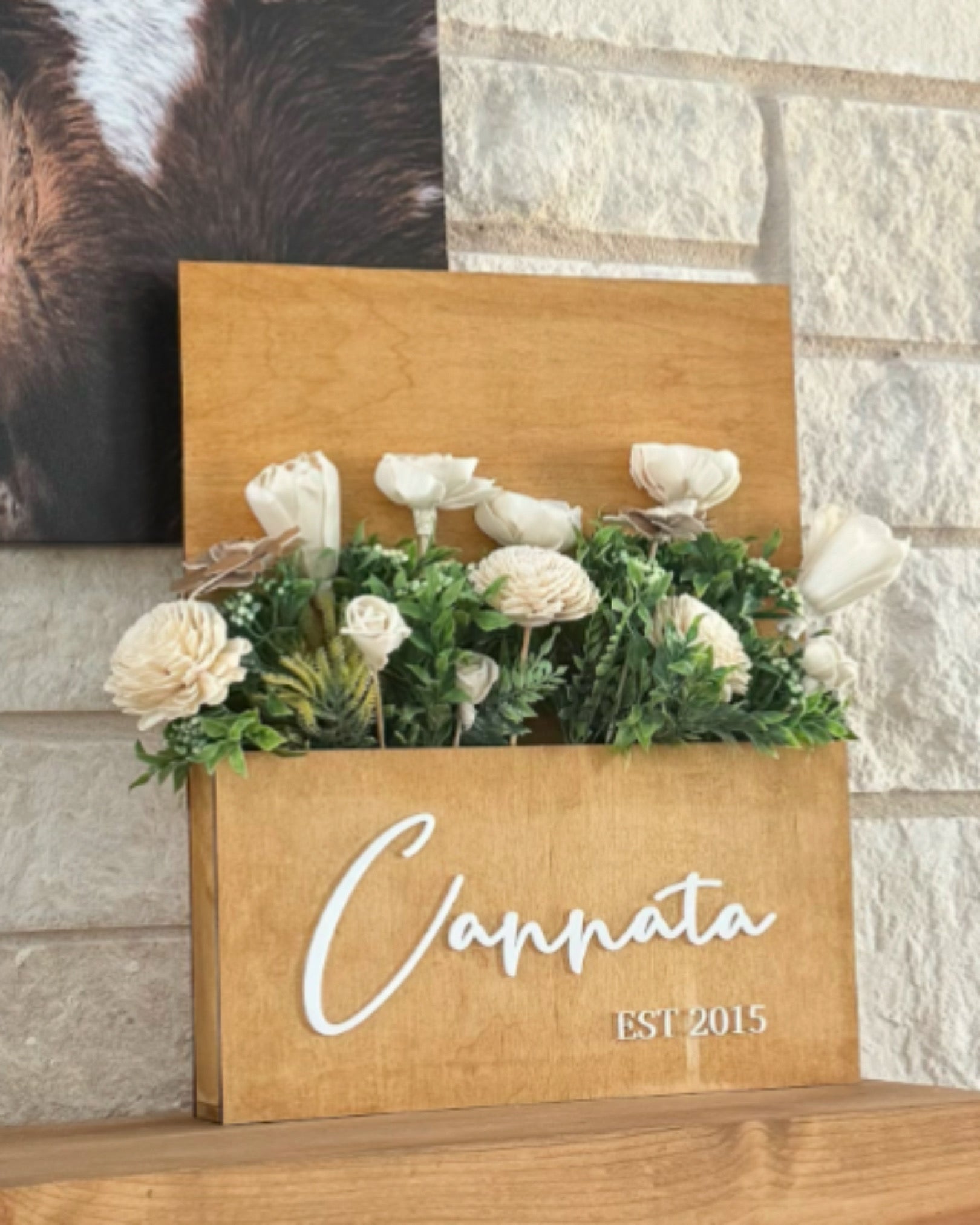 Customizable Design- Personalize your flower box with an acrylic name and EST year included in the price.