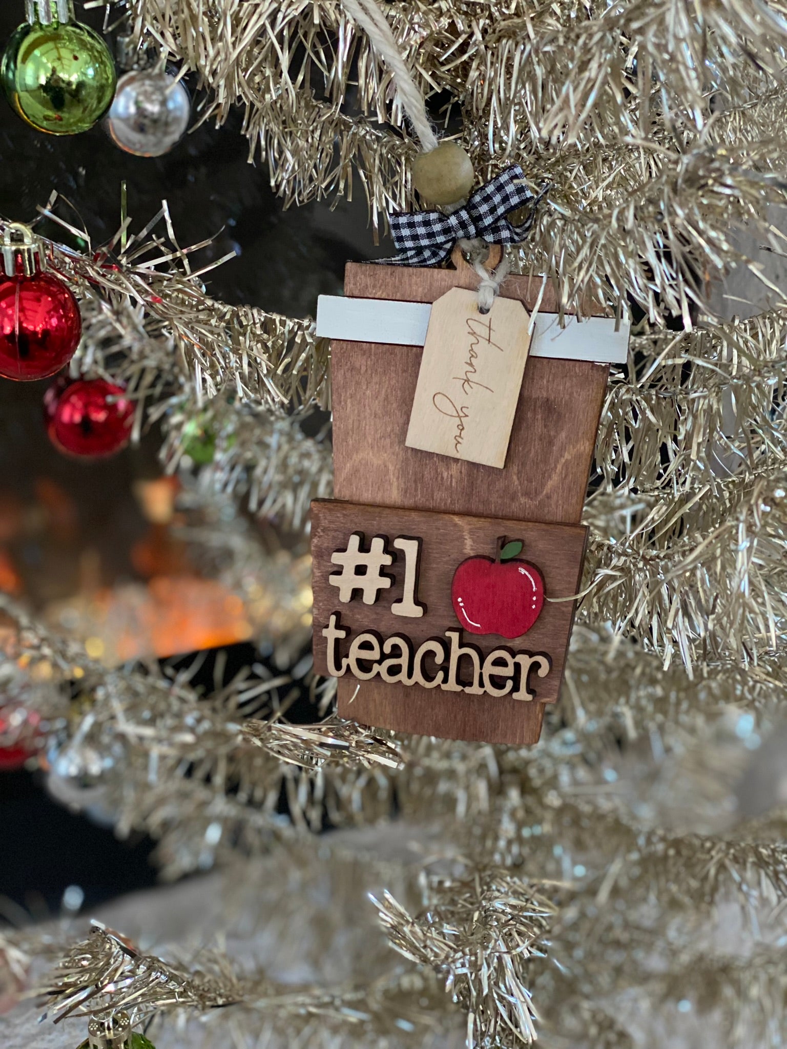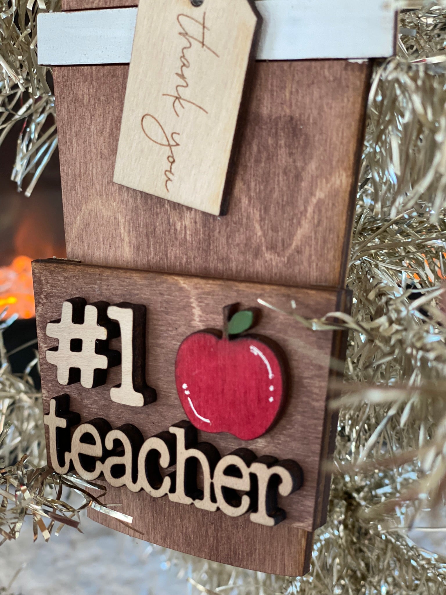 These ornament gift card holders are a perfect teachers gift. Each ornament is laser cut with birch wood and hand painted.